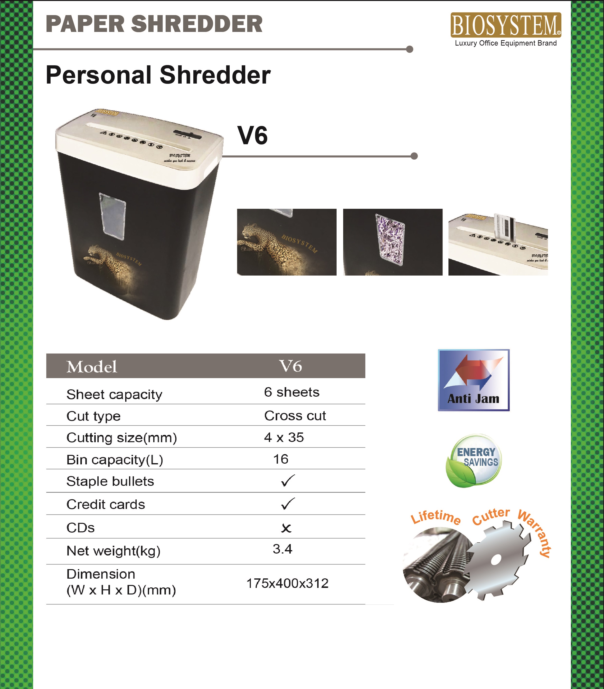 Description Personal Shredder Features · Sheet Capacity: 6 sheets · Cut type: Cross cut · Cutting Size: 4 x 35mm · Bin capacity: 16L · Auto start and stop · Reverse NetRead More…